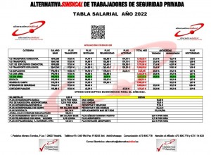 TABLA SALARIAL AÑO 2022 CONVENIO COLECTIVO DE SEGURIDAD PRIVADA